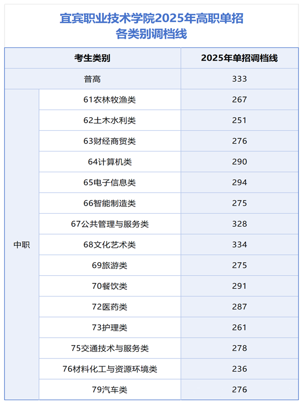 2025年单招各类别专业最低调档线(普高+中职)