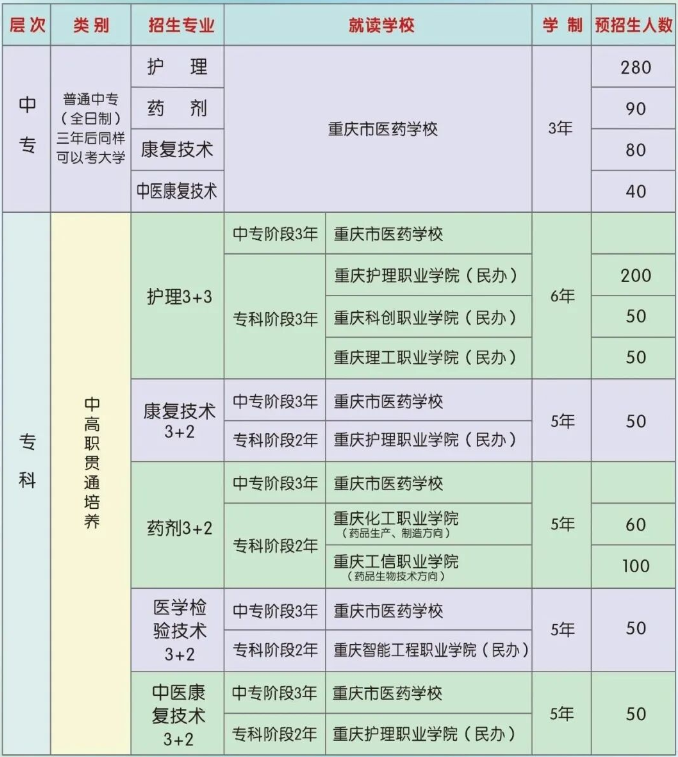 重庆市医药学校创办于1958年,其前身为重庆市长寿卫生学校,是重庆市重点中职学校、重庆市中等职业教育改革发展示范学校、重庆市“双优”中职学校(优质中职学校和优质专业)、第二批全国学校急救教育试点学校、重庆市文明单位、重庆市教育科研实验基地、重庆市智慧校园建设示范学校、改革开放40周年重庆校园文化建设百强学校、重庆市优质课程资源开发基地学校、重庆市体育卫生先进集体、长寿区国家职业技能鉴定考核基地。